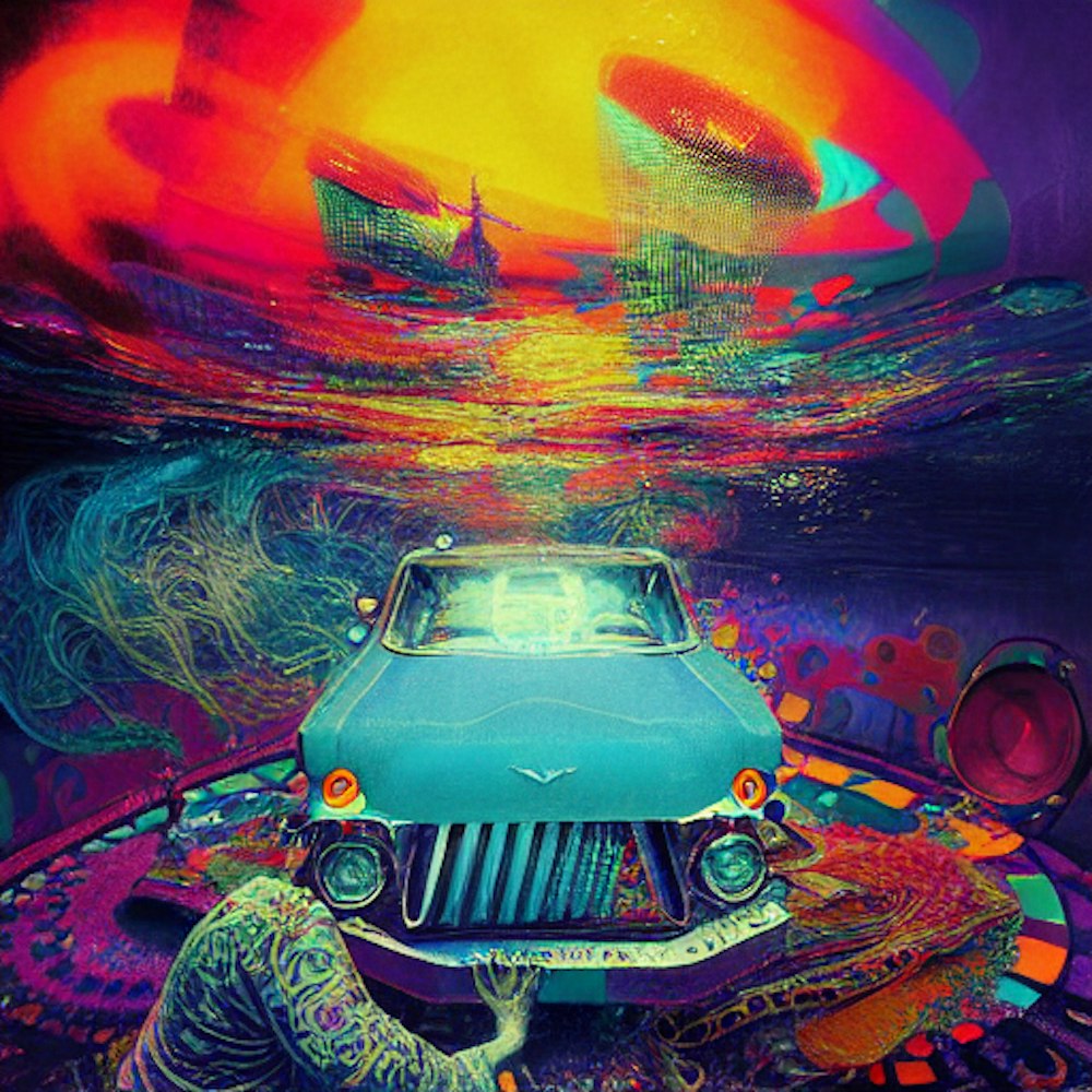 1960s London music scene, Psychedelic, by Jimi Hendrix, in the style of Keep on Truckin