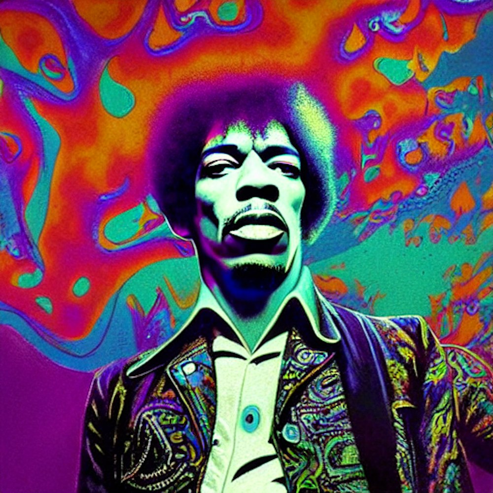1960s London music scene, Psychedelic, by Jimi Hendrix, in the style of Keep on Truckin