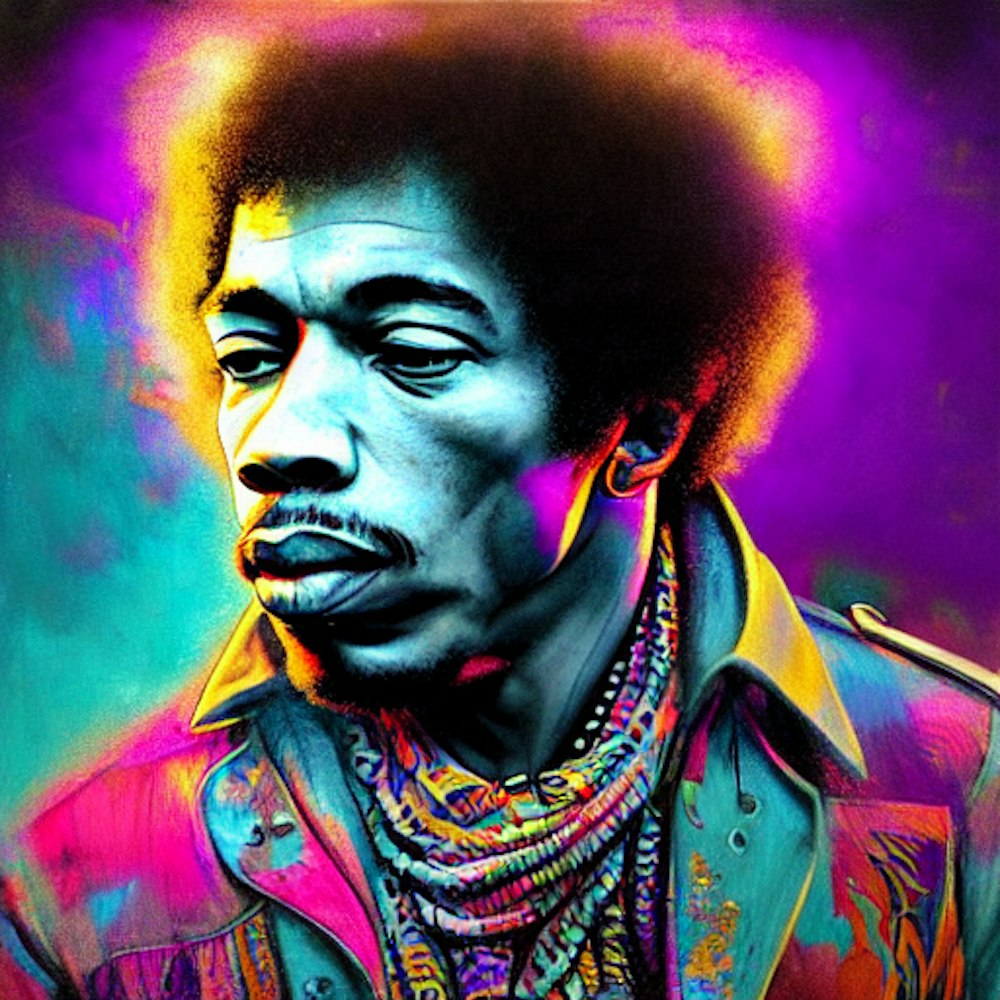 1960s London music scene, Psychedelic, by Jimi Hendrix, in the style of Keep on Truckin