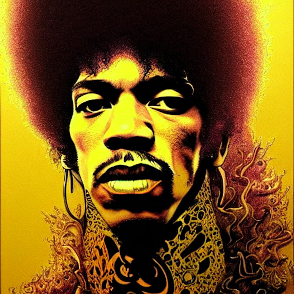 1960s London music scene, Psychedelic, by Jimi Hendrix, in the style of Keep on Truckin