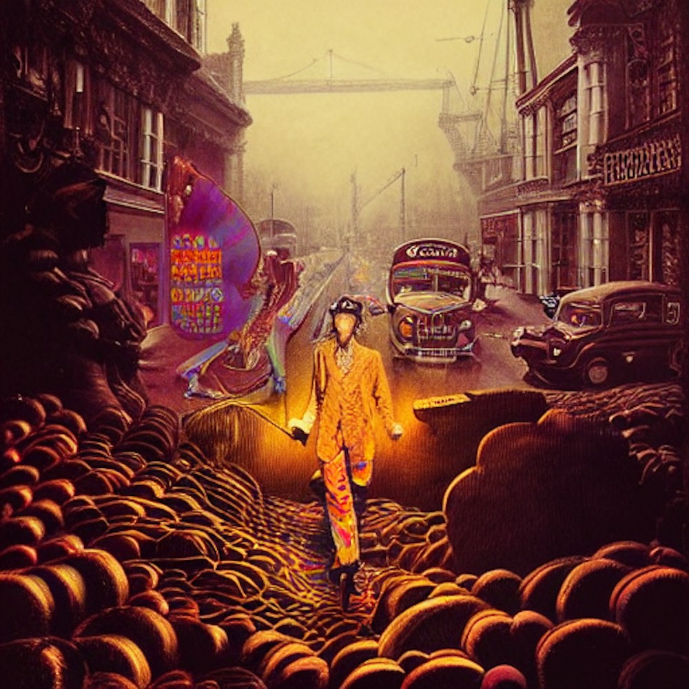 1960s London music scene, Psychedelic, by Jimi Hendrix, in the style of Keep on Truckin