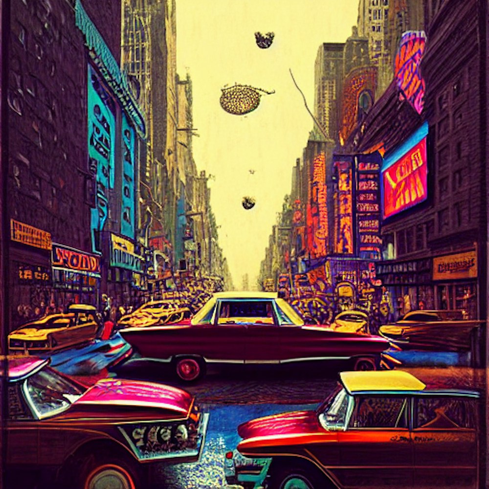 1960s New York music scene, Psychedelic, by Jimi Hendrix, in the style of Keep on Truckin