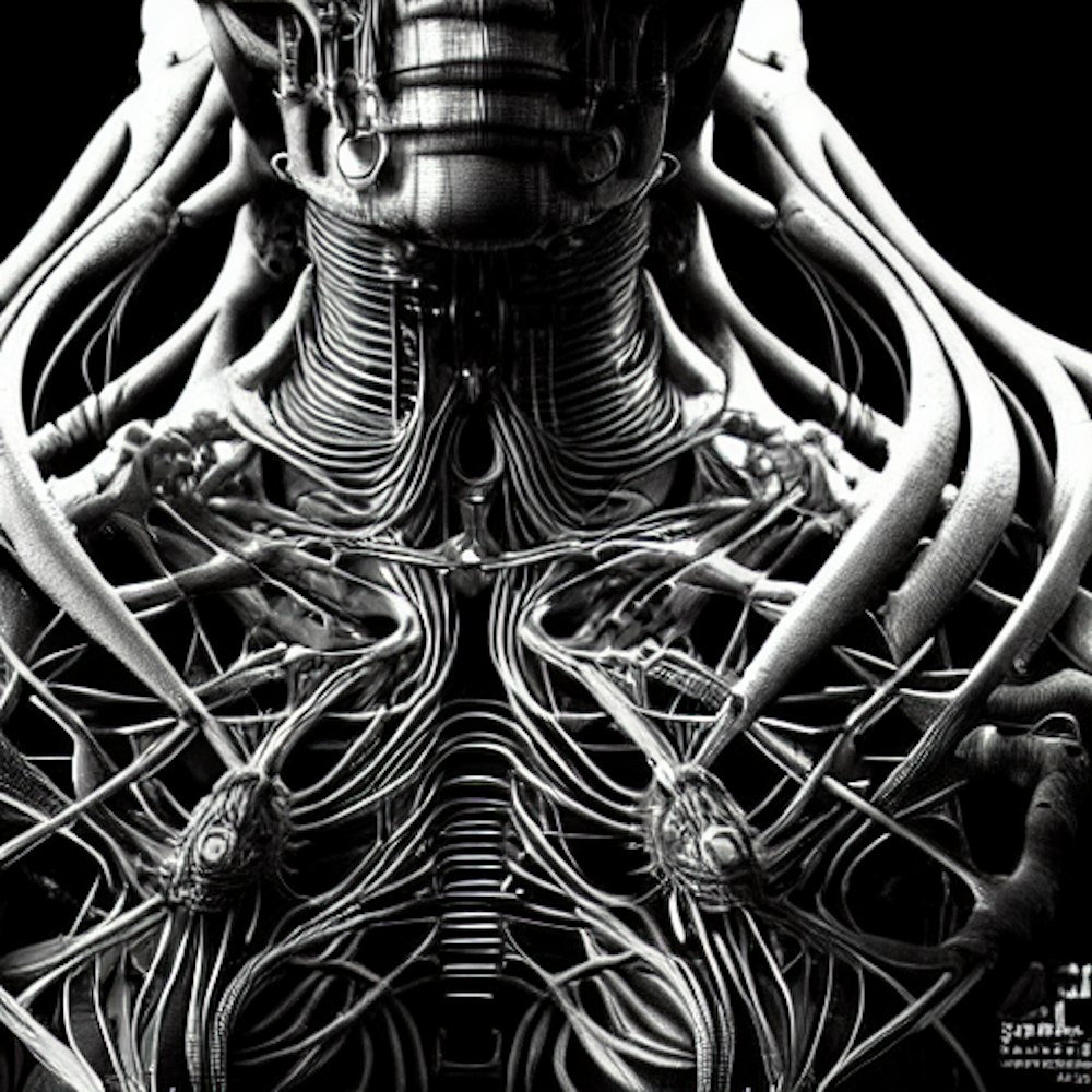 a biological android in style of giger
