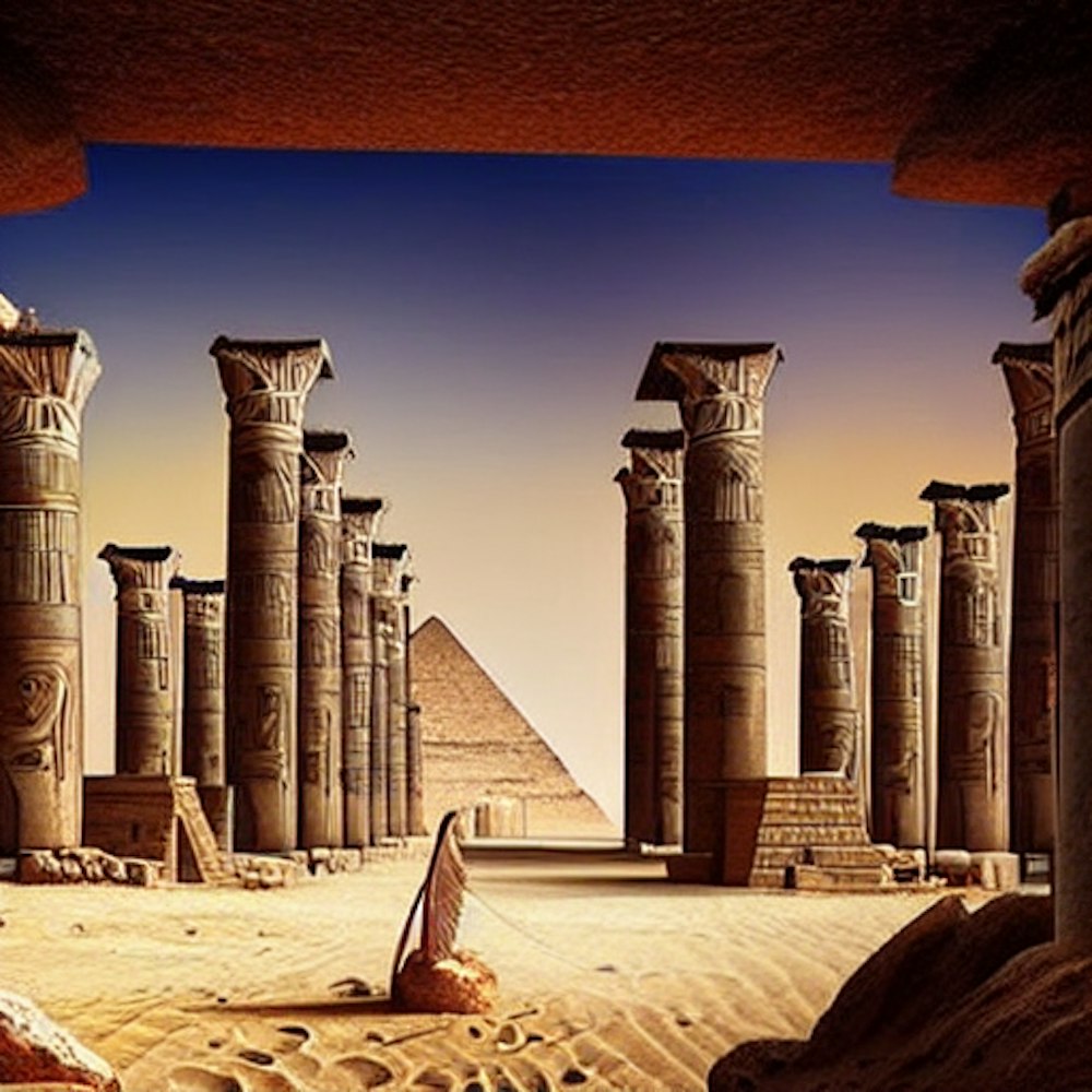 Ancient Egypt with 2 big pillars with ancient writing in the pillars . With sand on the ground