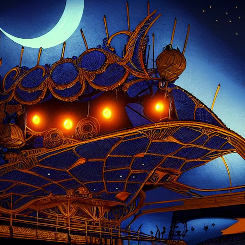 animated, moonlight, blue and orange dusk, ining the night