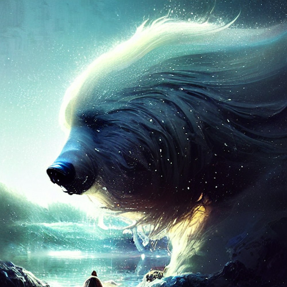 dark, white, big bear, moon, night, reflection,white long hair