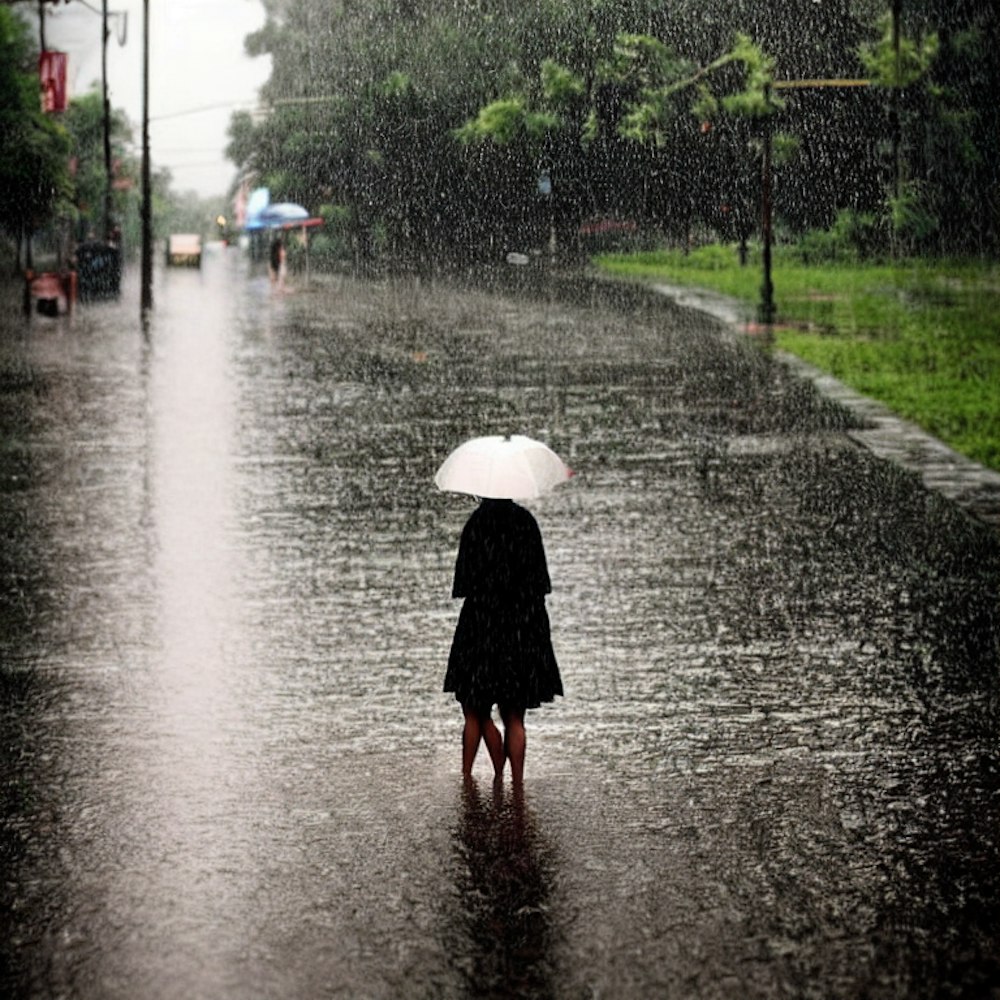 a world washed by the soothing touch of rainfall, capture the essence of a woman's genuine smile as she finds solace and joy in the midst of the downpour. Allow the diffusion of raindrops and the soft lighting to paint a picture of serenity and resilience. Explore the balance between the tranquil ambiance of the rain and the contagious happiness that lights up her face. Let this moment speak of the beauty found in embracing life's storms with unwavering optimism and grace.