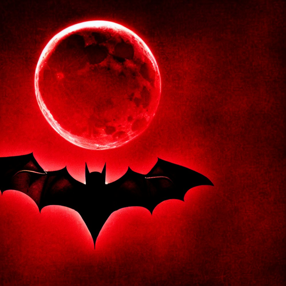 dark bat, red, moon, night, reflection