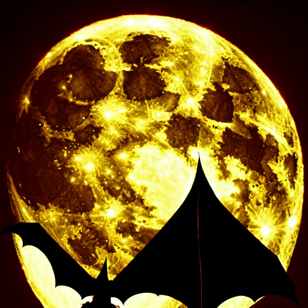 dark bat in the front, red, moon, night, reflection