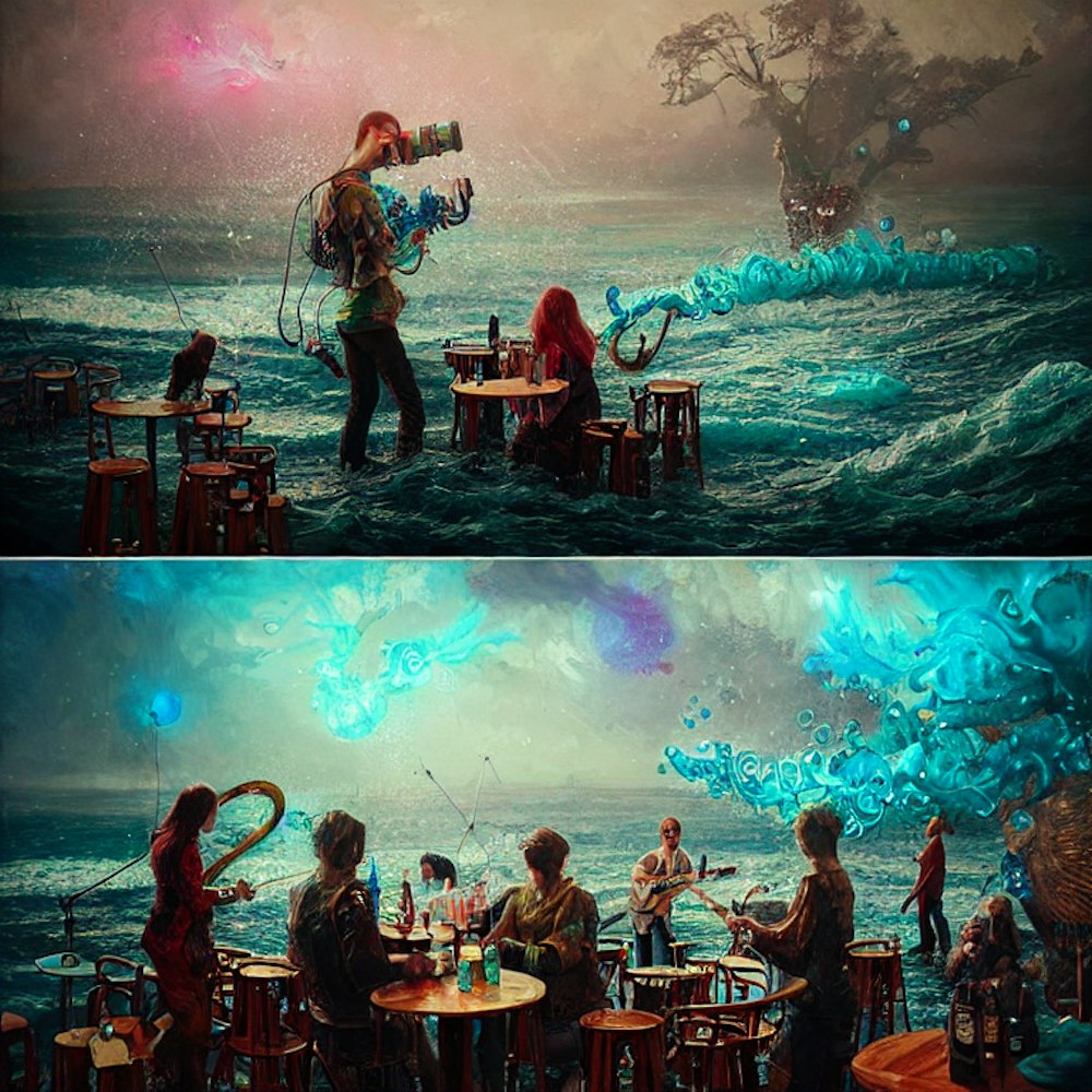 A band plays in a pub, realistic photo