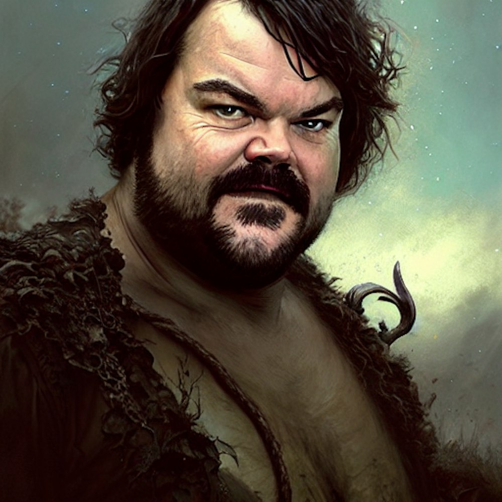 a portrait of actor Jack Black, fantasy character portrait, Graveyard landscape, ultra realistic, cinematic, concept art, wide angle, intricate details, hologram, highly detailed by greg rutkowski, aaron horkey, gaston bussiere