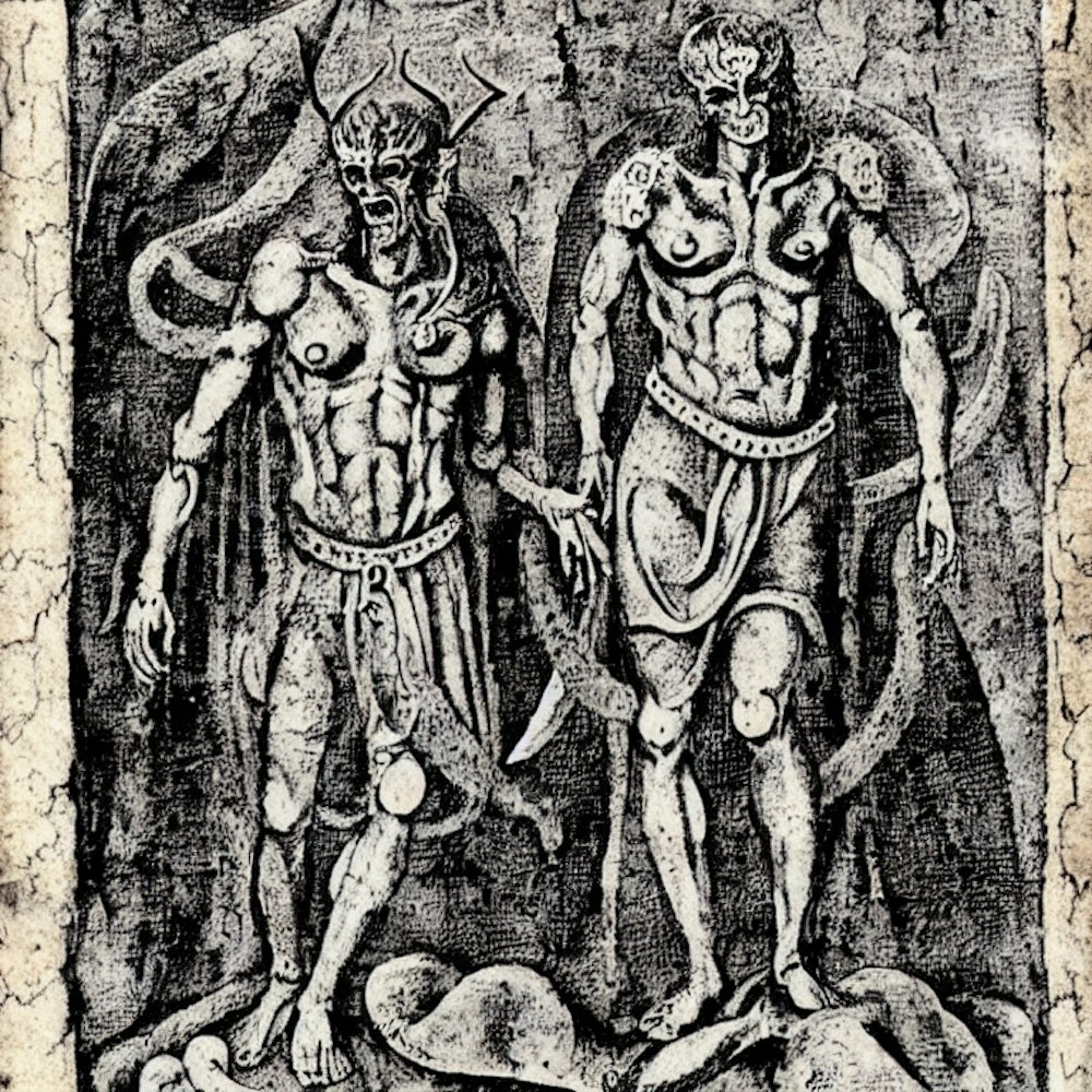 A male humanoid demon named Alizarkah, biblical depiction, 1600s news artwork
