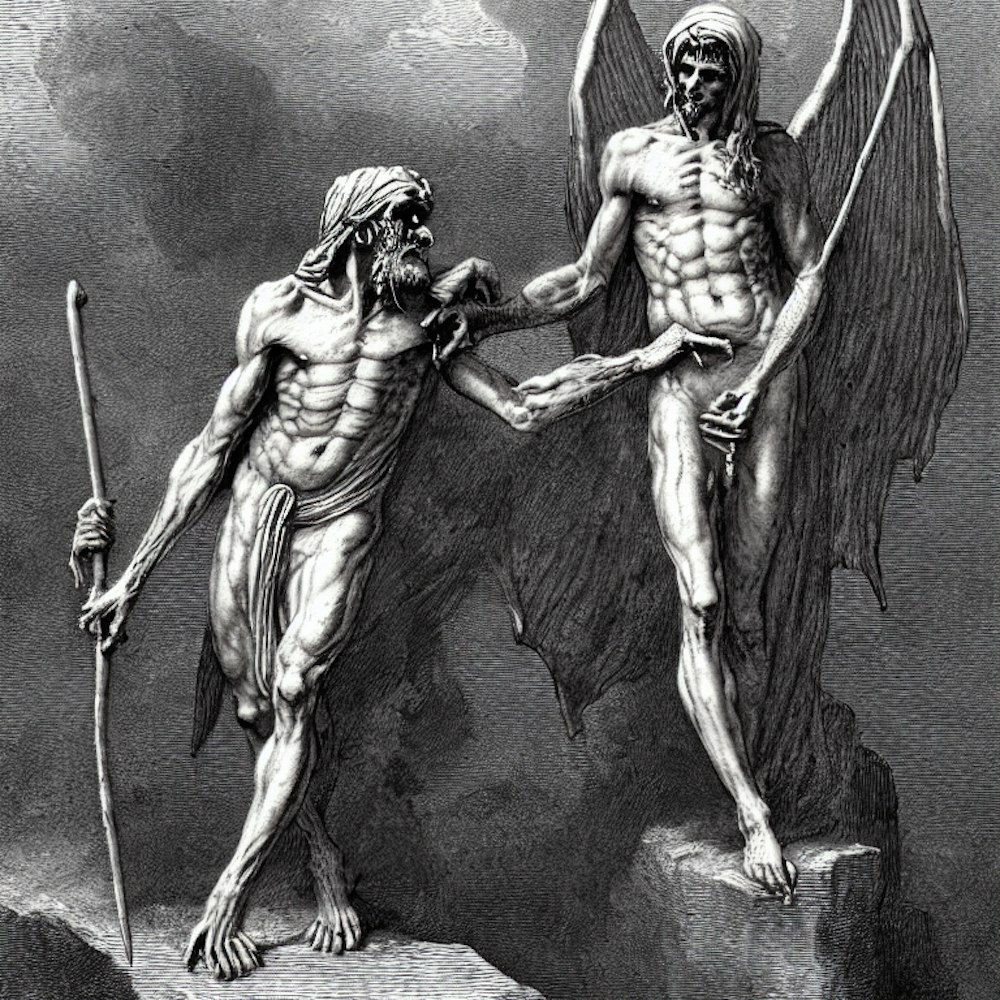 A male humanoid demon named, biblical paintings, in the style of Gustave Dore