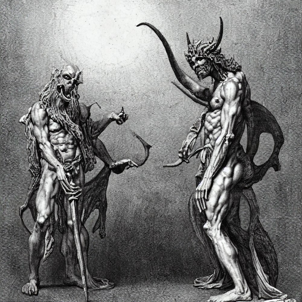 A male humanoid demon named, biblical paintings, in the style of Gustave Dore
