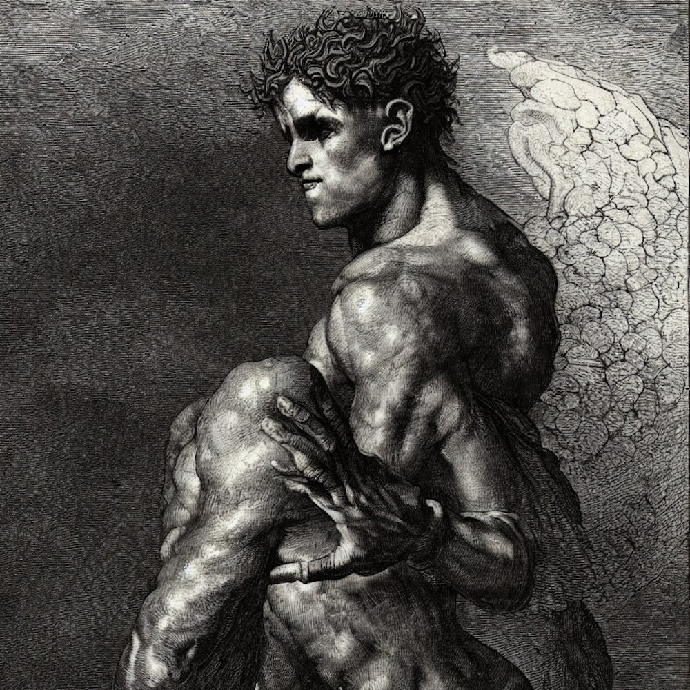 A young male humanoid demon, 1600s portrait, biblical paintings, in the style of Gustave Dore