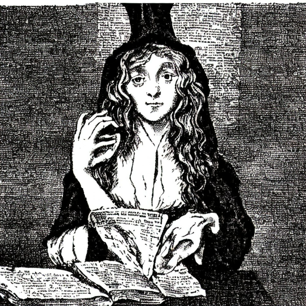 a young Salem witch named Meriham Jones, 1700s newspaper artwork