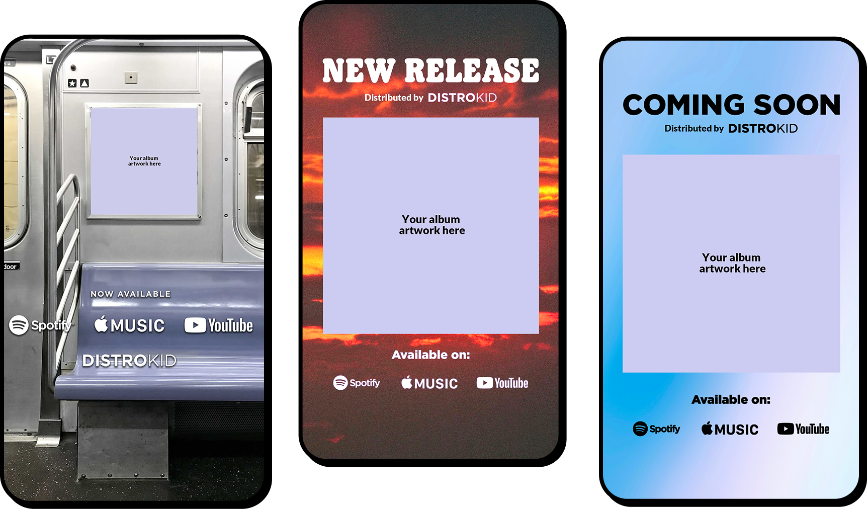 Just pick a design and post, whether you’re collecting pre-saves or celebrating release day. Use the hashtag #DistroKid so we can cheer you on.
