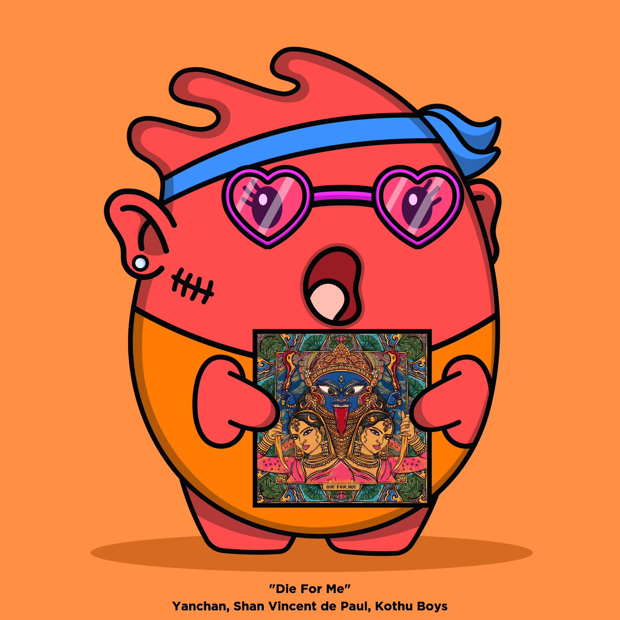The Kothu Boys stand for Tamil resilience. Their music is a blend of multiple genres with a highlight on hip-hop and South Indian classical elements. After the release of their debut album "Kothu Boys" in 2020, which has now garnered over 500,000 streams, they released this song called "Die For Me". This cover art was deigned by the amazing talented AISHR.